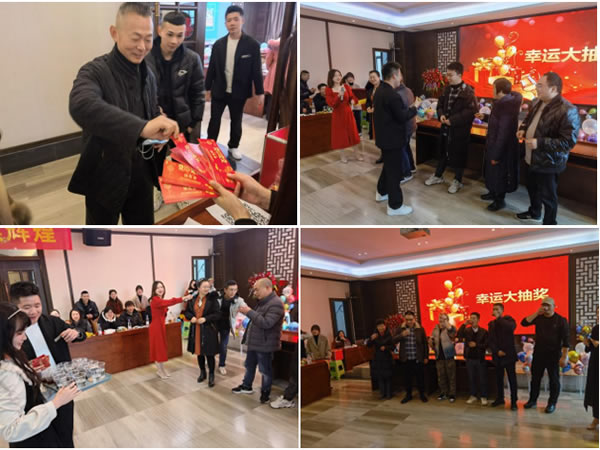 大家通过幸运传递的方式抽奖,向抽中的家人们,派发幸运红包,送上新年祝福,会场弥漫着热闹激动的气氛,寒冷的冬天让大家倍感温暖。